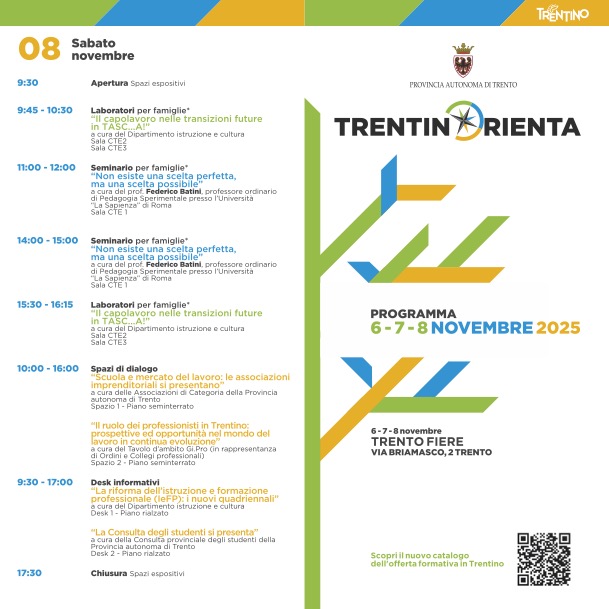 Torna nelle giornate del 6 - 7 - 8 novembre 2025 l'evento provinciale sul tema dell'orientamento scolastico